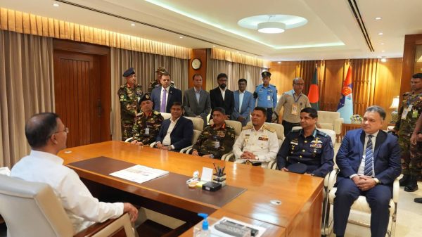 বিশেষ প্রতিবেদন : ঢাকা, ২৩, ফেব্রুয়ারি ২০২৬: গণপ্রজাতন্ত্রী বাংলাদেশ সরকারের মাননীয় প্রধানমন্ত্রী তারেক রহমান এর প্রতিরক্ষা উপদেষ্টা ব্রিগেডিয়ার জেনারেল (অব:) ড. এ,কে,এম, শামসুল ইসলাম, পিএসসি, জি, আজ সোমবার (২৩ ফেব্রুয়ারি ২০২৬) ঢাকার শের-ই-বাংলা নগরস্থ প্রতিরক্ষা মন্ত্রণালয় পরিদর্শন করেন। মাননীয় উপদেষ্টা প্রতিরক্ষা মন্ত্রণালয়ে আগমন করলে প্রতিরক্ষা সচিব মোঃ আশরাফ উদ্দিন তাঁকে স্বাগত জানান। এ সময় প্রতিরক্ষা